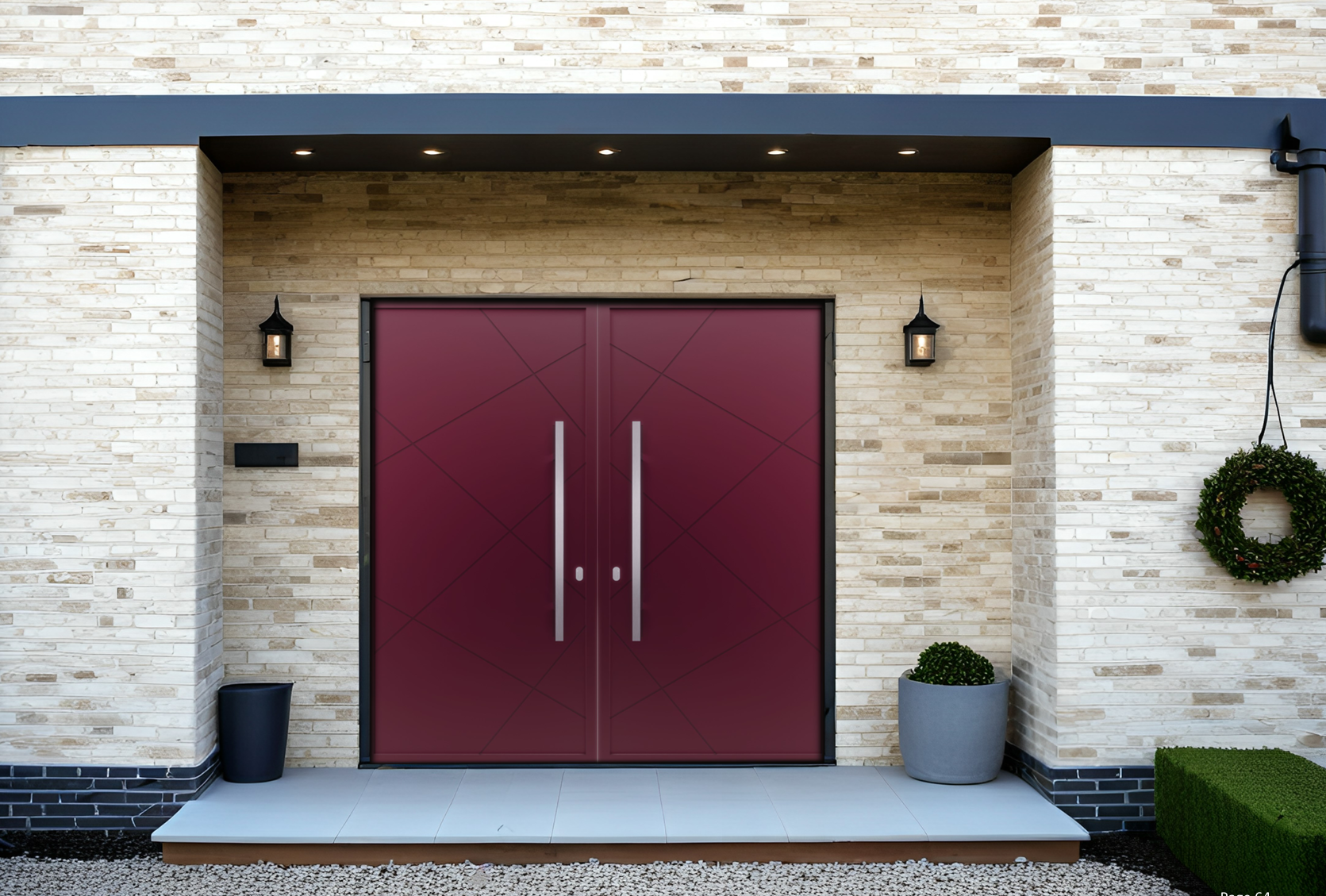 panels, arched and square glass details, and creative geometric patterns. Polished hardware adds a premium touch, ensuring durability and sophistication. Perfect for complementing various exteriors, these timeless doors create a stylish and lasting first impression for your home.